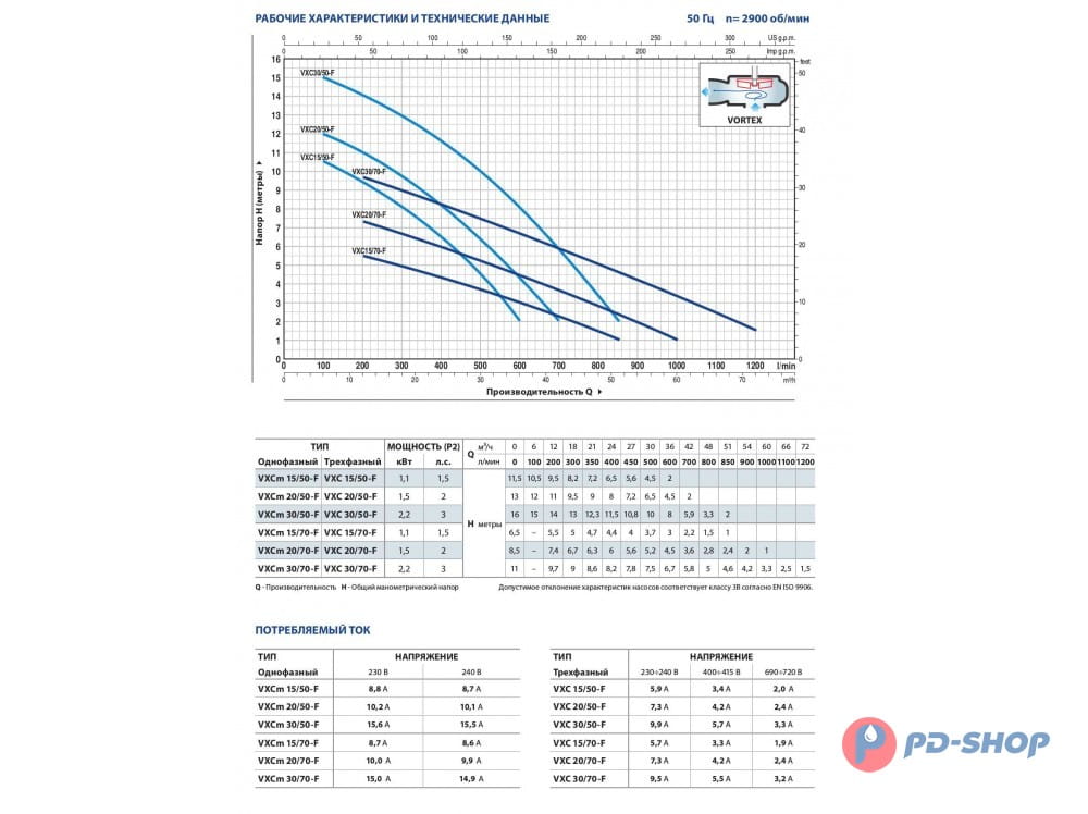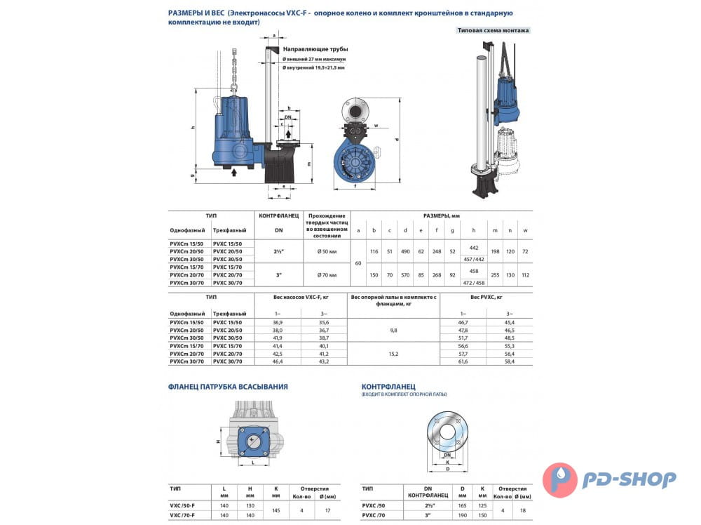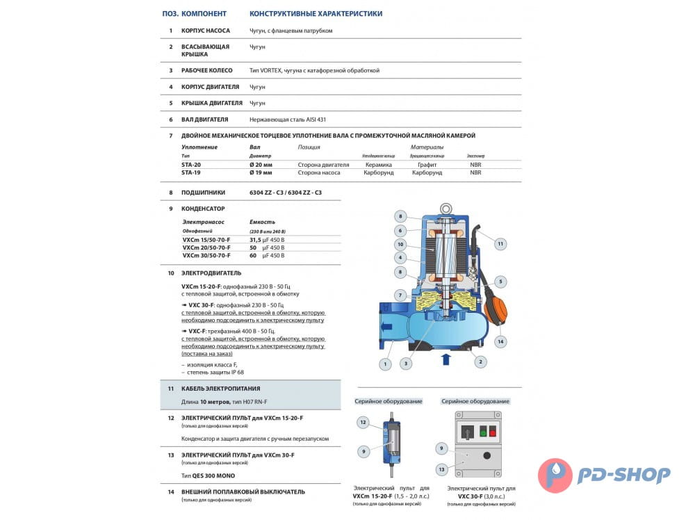 - Прохождение твердых взвешенных частиц: до O 40 мм для моделей VXC /35-N; до O 50 мм для моделей VXC /45-N